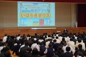 鉾田警察署から講師の先生をお招きして交通安全についてのお話をしていただきました。特にヘルメットについては、動画を見せていただきながらその重要性について多くのお話をいただきました。