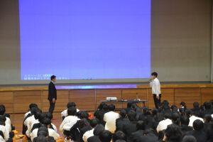 学校長あいさつ、生徒代表あいさつの後、生徒が作成した学校生活の動画視聴や、学校概要の説明を行いました。