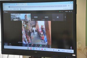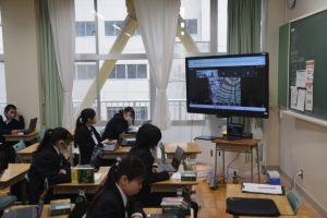 空っぽの教室は一見寂しく見えますが,実際には生徒の皆さんの元気な発言と笑顔で大賑わい。活気に満ちたオンライン授業となりました。