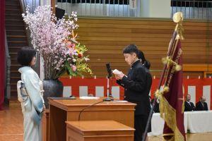 各小学校から集まった40人の生徒が、本校に入学しました。立派な態度で入学式に臨むことができました。代表生徒宣誓もすばらしかったです。